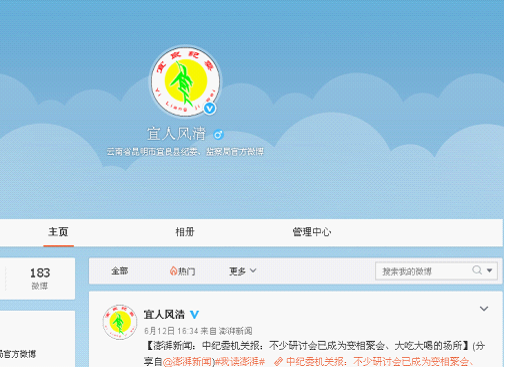 为加强“宜人风清”微信公众号、新浪微博和新浪博客的管理,宜良县纪委监察局还专门制定了《中共宜良县纪委 宜良县监察局微信公众号 新浪微博 新浪博客管理办法》对三个公众平台的功能定位、帐户管理、信息发布等内容进行了明确和规定。