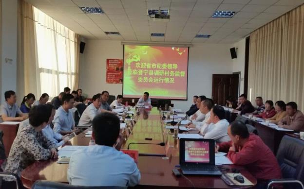 10月25日下午,省纪委副书记杨玉清牵头、省纪委党风政风监督室主任孟端平带队到晋宁对村务监督委员会运行情况进行专题调研。市委常委、市纪委书记杨金莹、市纪委副书记、市监察局局长熊坚等相关领导陪同调研。晋宁县委书记傅希、县委常委、县纪委书记范今颖、县委常委、县委组织部部长李雁昆,二街镇党委、纪委及有关部门负责同志参与调研。