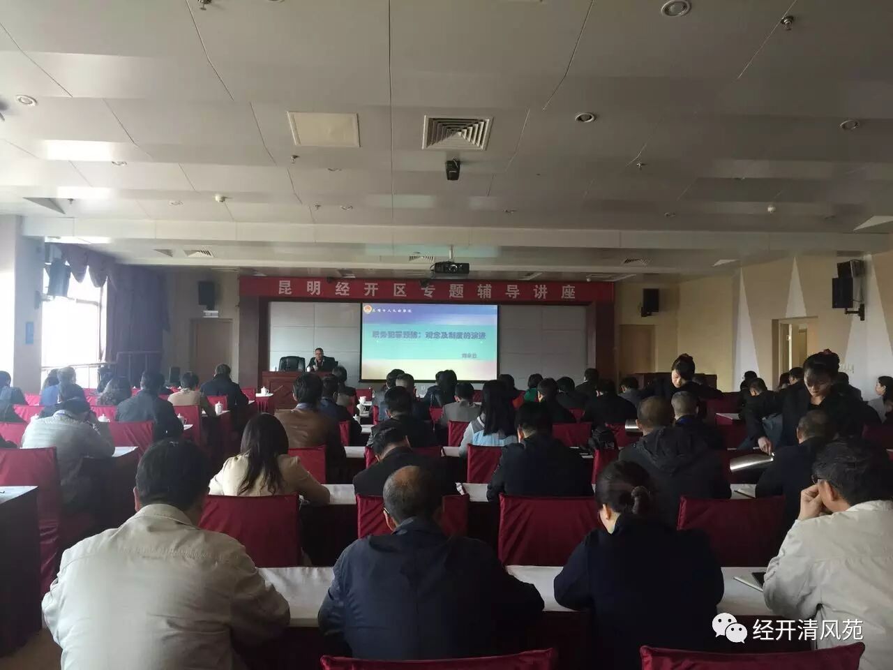 十八大以来,随着中央八项规定精神的出台,反“四风”不断持续深入,“为官不为”的问题正逐渐显现出来,一些基层干部认为干事有风险,不干就不会出错,索性能躲就躲,能推就推。为进一步提高经开区干部依法履职的意识,增强广大干部严格执法、公正执法、廉洁执法的责任感和使命感,有效预防行政不作为、慢作为、乱作为等现象发生,2017年3月14日,经开区组织开展了一次“法进机关”廉政教育活动,邀请昆明市检察院反渎职侵权局综合指导处邓水云处长作反渎职侵权的专题学习讲座。