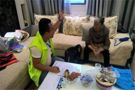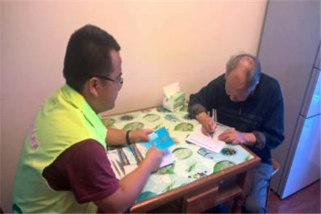 宣传员入户对创建全国文明城市工作进行宣传、介绍