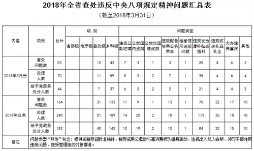 2018年3月份全省查处违反中央八项规定精神问题53起
