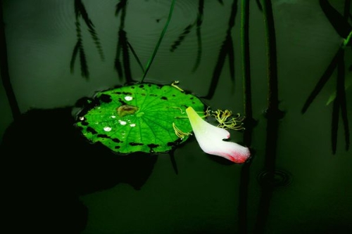 一茎孤引绿,双影共分红。(谢家平 摄)