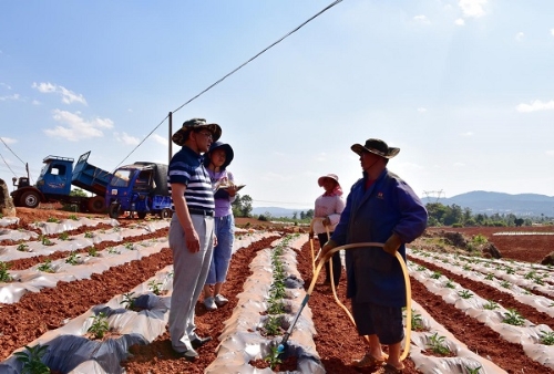 端午节前,昆明市石林县纪委监委组成6个监督单元组,深入田间地头、蔬菜大棚、育苗基地等农业生产一线,开展专项监督检查,了解农机补助、良种补贴、农资直补发放落实情况,查找以权谋私、虚报冒领、优亲厚友、贪污侵占惠农资金问题线索。图为单元组成员在长湖镇舍色村向群众了解情况,排查问题线索。