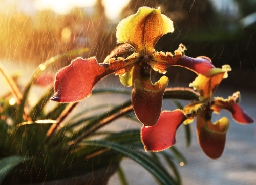日脚沈红天色暮。青凉伞上微微雨。(税昌海 摄)