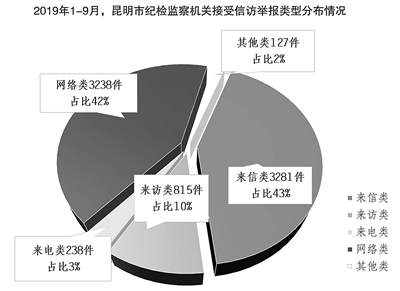 2019年1至9月,昆明市纪检监察机关接收信访举报类型分布情况