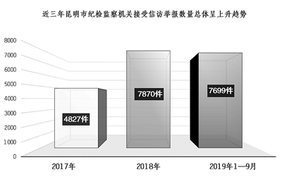 2019年1至9月,昆明市纪检监察机关接收业务范围以外的信访举报占比约30%