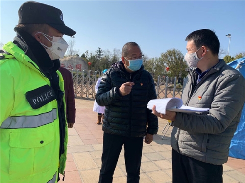 石林县纪委监委主要领导带队到各乡镇、村委会督查疫情防控情况。图为督查组在昆河路豆黑村防控点检查车辆出入登记、宣传防护情况。