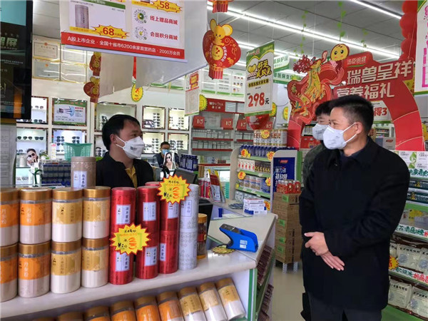 为切实做好疫情防控工作,昆明市纪委市监委驻市市场监督管理局纪检监察组及时对昆明市各城区农贸市场及药品零售企业进行监督检查,督促昆明市市场监督管理系统各职能部门履行好职责。图为纪检组随机检查昆明药品零售企业,重点检查驻在部门是否存在严厉打击与疫情防控有关的假冒伪劣产品、囤积居奇、哄抬物价、虚假宣传等扰乱正常市场秩序行为。