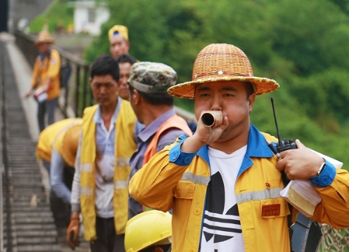 “七一”前,中国铁路昆明局集团公司曲靖工务段红果线路车间组织党员业务骨干对南昆线红岩河钢梁桥进行综合整治,确保施工安全。(杨永全 摄)