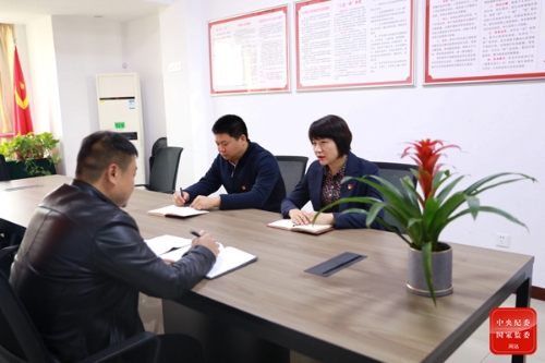 河南省新密市纪委监委围绕违纪违法典型案件暴露出的问题,开展直面问题压实责任谈心谈话,以谈明责、以谈促改。图为该市派驻纪检监察组对驻在单位相关部门负责人进行一对一谈心谈话。(河南省新密市纪委监委 杨宗昊 摄)