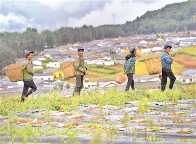 为巩固脱贫成果,四川省探索打造居家灵活就业与传统优势手工业联动发展的模式,谋划传统手工艺、公益性岗位、就近产业园务工等一系列举措,助推村民在家门口就业。图为凉山彝族自治州布拖县拖觉镇老吉村村民在去往蓝莓种植基地务工的路上。新华社记者 刘坤 摄