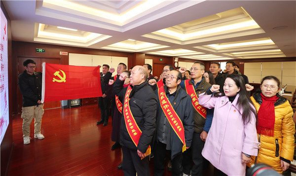 “我志愿加入中国共产党,拥护党的纲领,遵守党的章程,履行党员义务,执行党的决定……”面对着鲜红的党旗重温入党誓词,退休纪检监察干部们的眼神坚定、声音铿锵有力。退休,离开的是奋斗半生的工作岗位,但烙印着红色印记的初心永远也不会变……