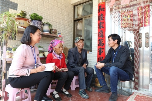 近日,文山市纪检监察干部在马塘镇舍哨村向村民了解相关政策落实情况。(王铭坚 摄)