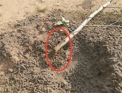 高尔夫球场侵占滇池一级保护区,相关单位弄虚作假,将树枝插入浅层表土,冒充植树。(中央生态环保督察组供图)