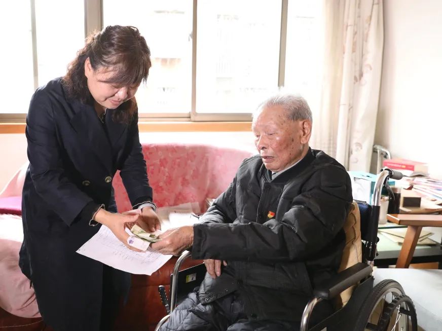 “那场战役我们十天只吃了三顿饭,十天十夜步行到达指定地点顺利会师,支撑我们的就是作为共产党员的理想信念。”王奎老同志为大家讲起了战争年代的奋斗故事,并交纳党费,在党费交纳单上用颤抖的双手坚定写下自己的名字。他嘱咐年轻同志,年轻奋斗正当时,要立足岗位做贡献,将市纪委市监委优良作风继续发扬光大。