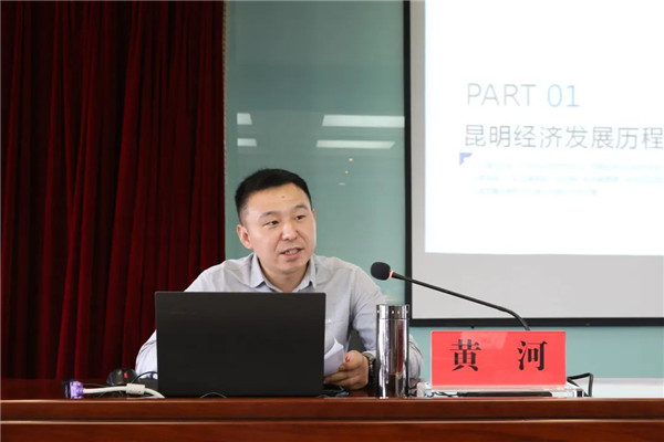 本期文明讲堂邀请市委政研室副主任黄河作《新形势新挑战新使命 昆明经济发展任重道远》专题授课。他从昆明经济发展历程、当前昆明经济面临的主要问题以及未来一段时期昆明经济发展的目标要求和责任使命三个方面进行了详细讲解。
