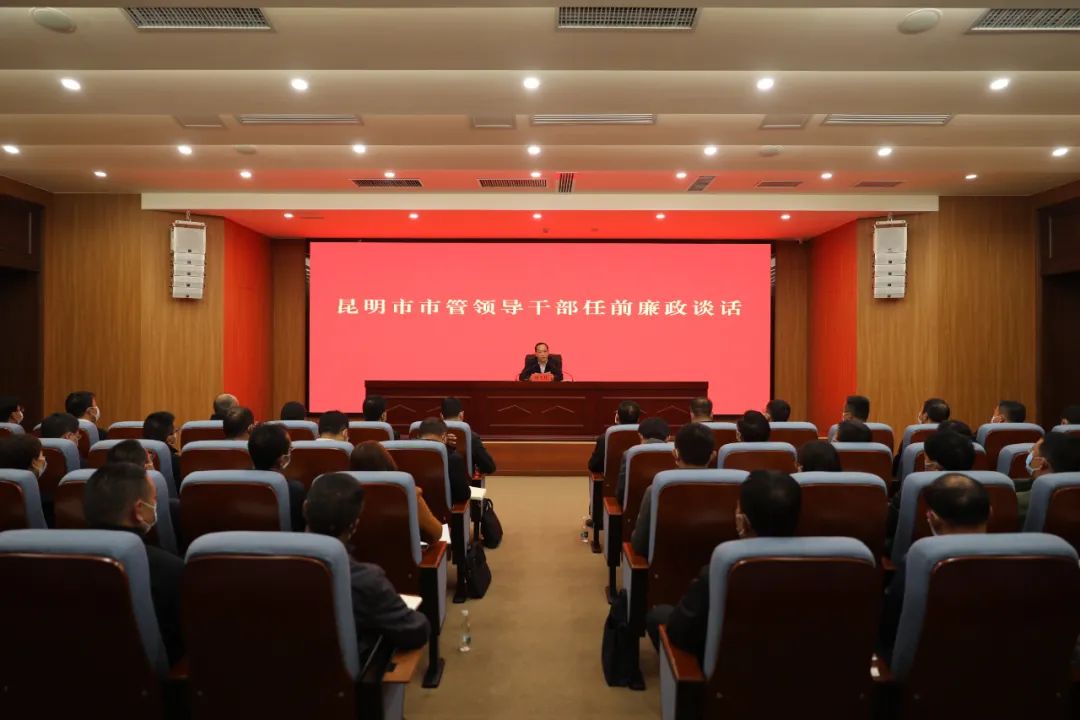谈话前,全体新任职(交流)领导干部在昆明市警示教育基地接受警示教育、重温入党誓词、观看警示教育片并现场签订《领导干部党风廉政建设承诺书》。