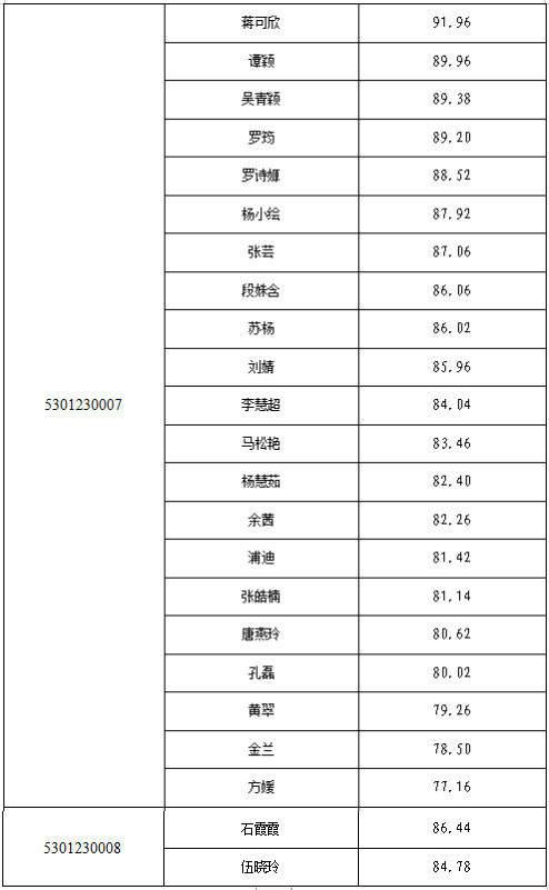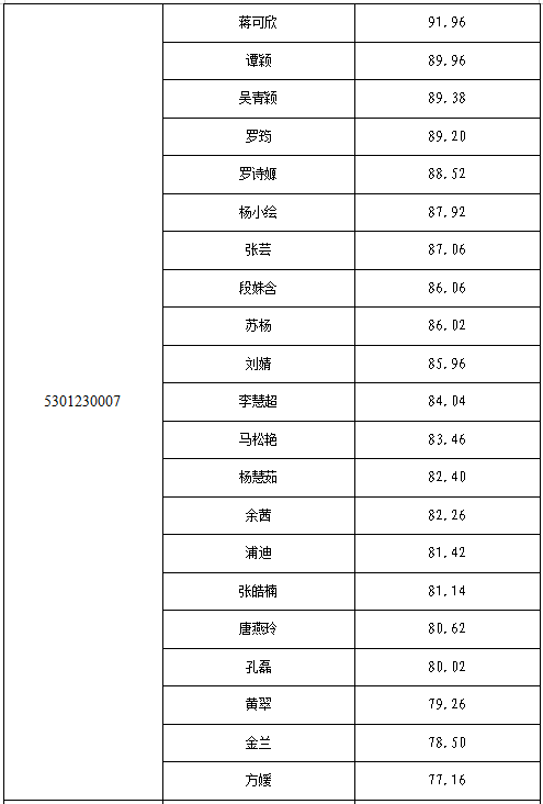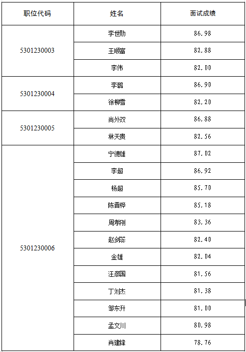 昆明市纪委监委2023年公开遴选公务员面试成绩及考察人选公示