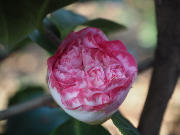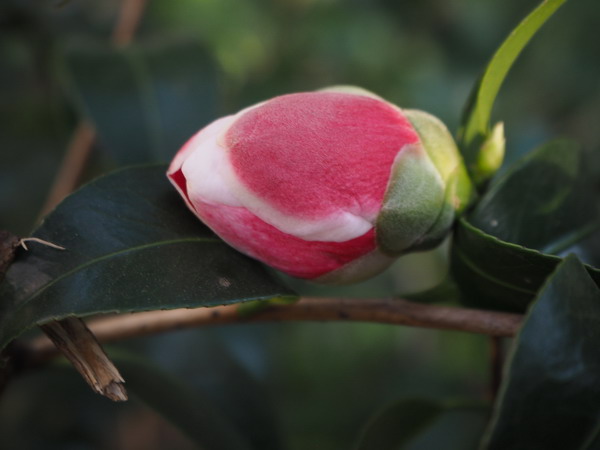 粉白相间的山茶花花骨朵,如一幅梦幻的水彩画。粉色的婉约与白色的纯净交相辉映,宛如一个少女粉嫩 的脸庞。这一朵花骨朵,是大地对美好的深情告白,让心灵在花的柔情里荡漾。