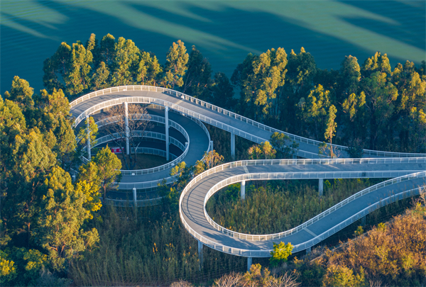 立春时节,位于晋宁区的湖之桥蜿蜒于林间水畔,银廊似带,衔着初醒的草木与湖光,漾开春日第一缕生机。(晋宁区纪委监委 宋光旭 摄)