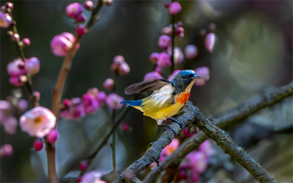 立春,金殿的梅枝仍是浅冬的疏瘦。一只红胸啄花鸟静立梢头,它以喙尖轻叩季节的门环——率先窥见了融化在薄雾里的、整个春天的颜色。(盘龙区纪委监委 杜国辉 摄)