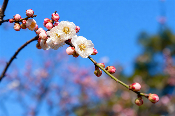 立春时节,枝头的梅花悄然绽放,白瓣似雪,嫩蕊如金,在澄澈如洗的蓝天下舒展,为人间送来春的信笺。(寻甸县纪委监委 段懿菲 摄)