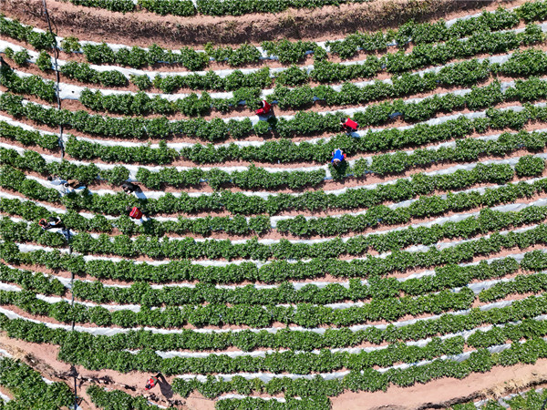 “立春一日,百草回芽”,东风解冻,草长莺飞,金沙江的干热河谷被阳光温柔包裹。在禄劝县汤郎乡层叠的梯田间,一片绿意正酝酿着独属冬日的甜蜜,千亩人参果正悄然熟透,荡漾着独属于丰收的甜。(禄劝县纪委监委 赵昌玉 摄)