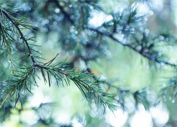 淅淅沥沥的春雨,轻轻拂过松面,晶莹剔透的水珠缀满针叶,透着惊蛰独有的生机与温润。(滇池度假区纪工委 张凝 摄)