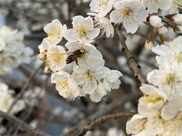 微风拂过,落英点点,蜂鸣阵阵,这是大自然最温柔的苏醒,是生机悄然涌动的开始。一蜂一花,一动一静,将惊蛰时节的明媚与生机,轻轻写在春光里。(驻市检察院纪检监察组 吴风 摄)