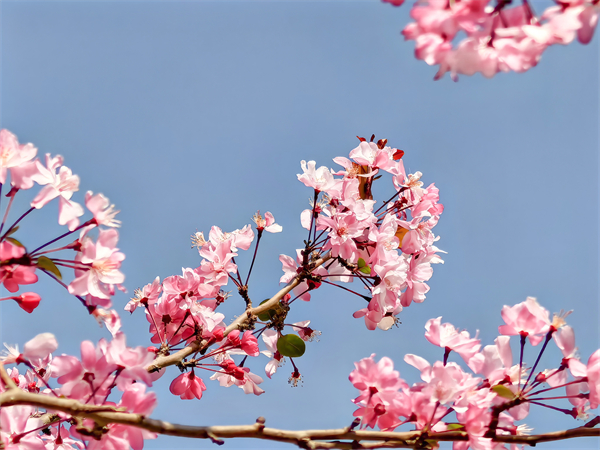 惊蛰时节,晋宁春意渐浓,串串垂丝海棠温婉舒展,轻垂在枝头,将柔润的春意轻轻漾开。(晋宁区纪委监委 温冉 摄)