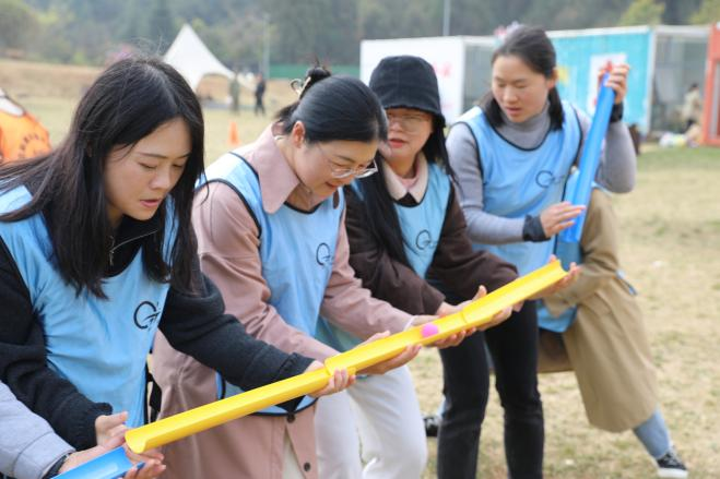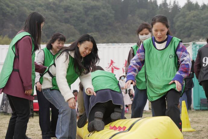 随后,大家来到户外场地开展趣味团建活动。互动以“桃花朵朵开”游戏拉圈破冰,大家在奔跑、欢笑与相互寻找中拉近了物理与心理距离。在分组游戏中,大家精准对接、高效配合,诠释了“心往一处想、劲往一处使”的协作真谛。跨部门同事相互信任、彼此成就,欢声笑语与喝彩声此起彼伏,充分展现出机关女职工刚柔并济、从容自信的良好精神风貌。