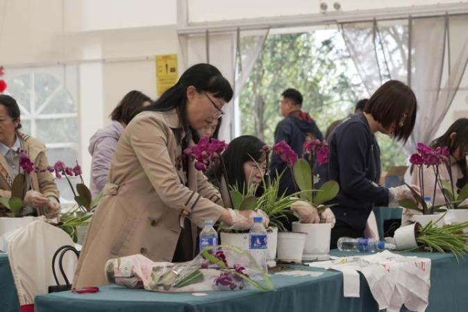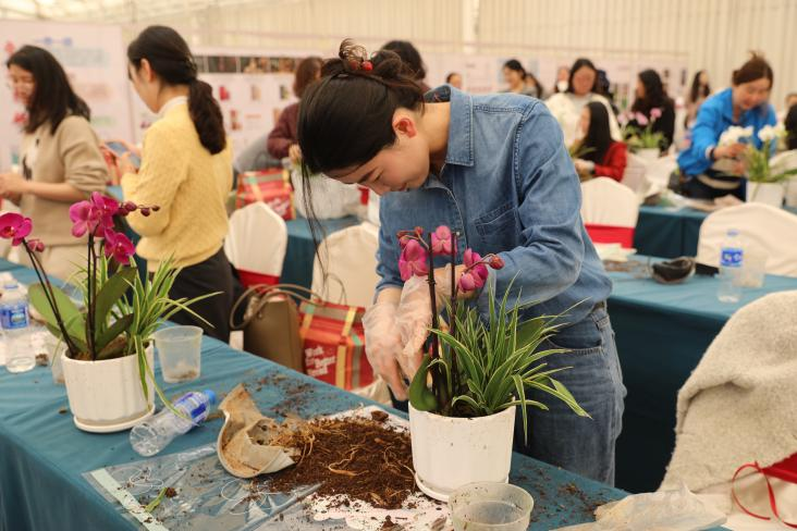 在随后的蝴蝶兰盆栽制作环节,大家跟着专业老师认真学习盆栽技巧与兰花养护知识,修根、定植、装饰,每一个步骤都细致用心,将一株株蝴蝶兰打造成独具个性的盆栽作品。亲手栽种的过程中,大家不仅掌握了花卉培育知识,更从蝴蝶兰“高洁坚韧”的品格寓意中汲取精神力量,在指尖生花的美好体验中收获满满幸福感。淡雅兰香间,既传递着春日的生机,更寄托着对清正品格的坚守与追求。