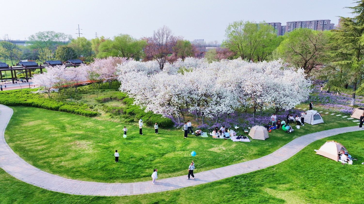 时至谷雨,万物生发,市民踏青赏景,漫步于绿意之间,感受城市生态之美,在融融春色中乐享美好生活。(江苏省宿迁市宿城区纪委监委供 焦尉 摄)